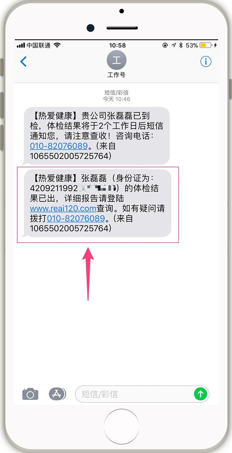 体检结果生成后,将会短信通知企业和候选人,企业和候选人均可在手机上查询报告