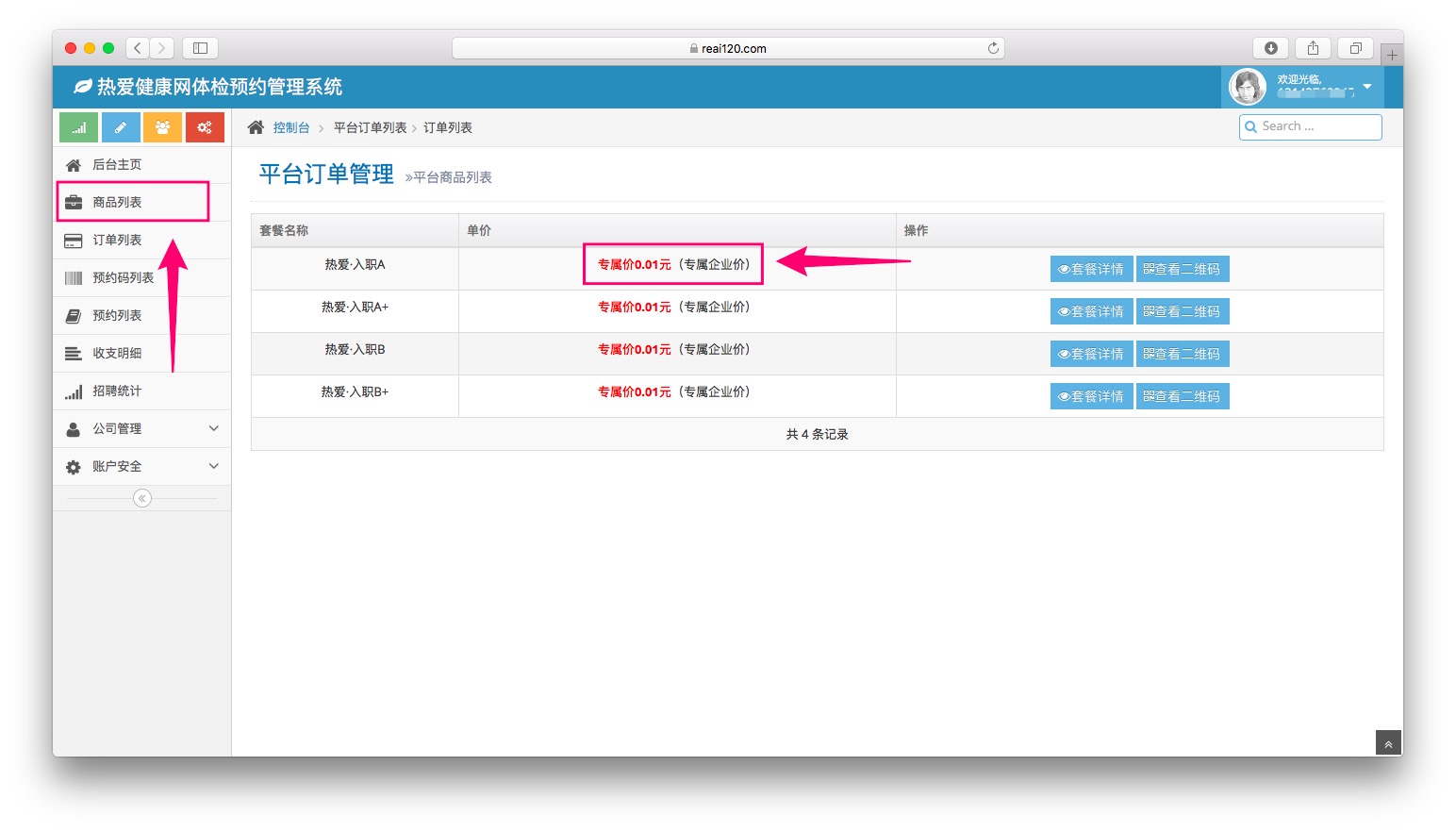 企业认证审核通过后,企业可以在后台「商品列表」中看到可购买的套餐,以及认证后的专属价格